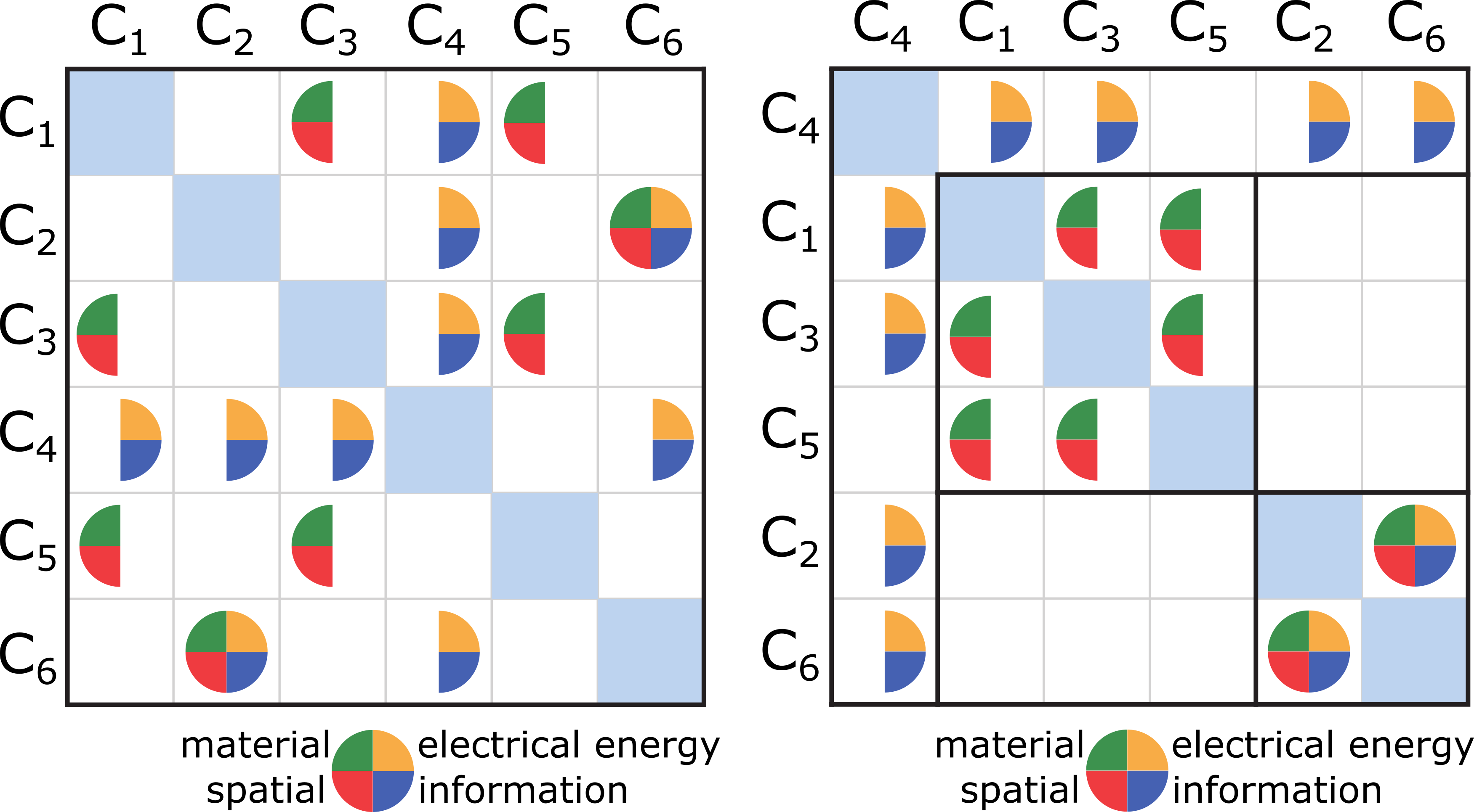 Schematic comparison DSM showing the differences between two alternative system architectures.2